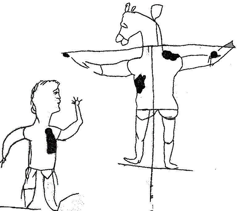 Ancient Persians and Greeks did use a single stake to crucify their victims (crux simplex, see figure one). A victim’s hands/wrists were nailed together above his head with a single nail, and his feet in a similar manner with another nail. But the Romans adapted the Persian method and included a whole set of humiliating tortures to the act. From the first century bc forward, they normally used the crux compacta, using both a vertical stake and a transverse beam. The usual practice was to have the criminal whipped, then forced to carry the horizontal beam of the cross, the patibulum, through the city, while being ridiculed by the populace. The parade ended at the site of the crucifixion, where the stipes, the vertical beam, had been permanently set in place. Criminals were taken to the foot of the stipes, had their arms stretched out on the patibulum, and their hands nailed to it. They were then hoisted up a few inches onto the stipes, and had their feet nailed to it.